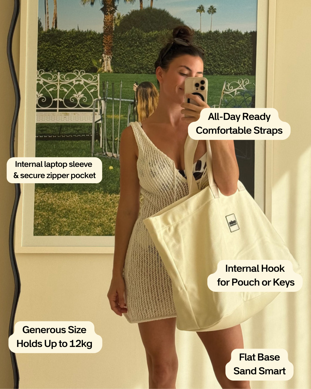 An oversized, lightweight bag made for everyday life, in our soft Bone tone.